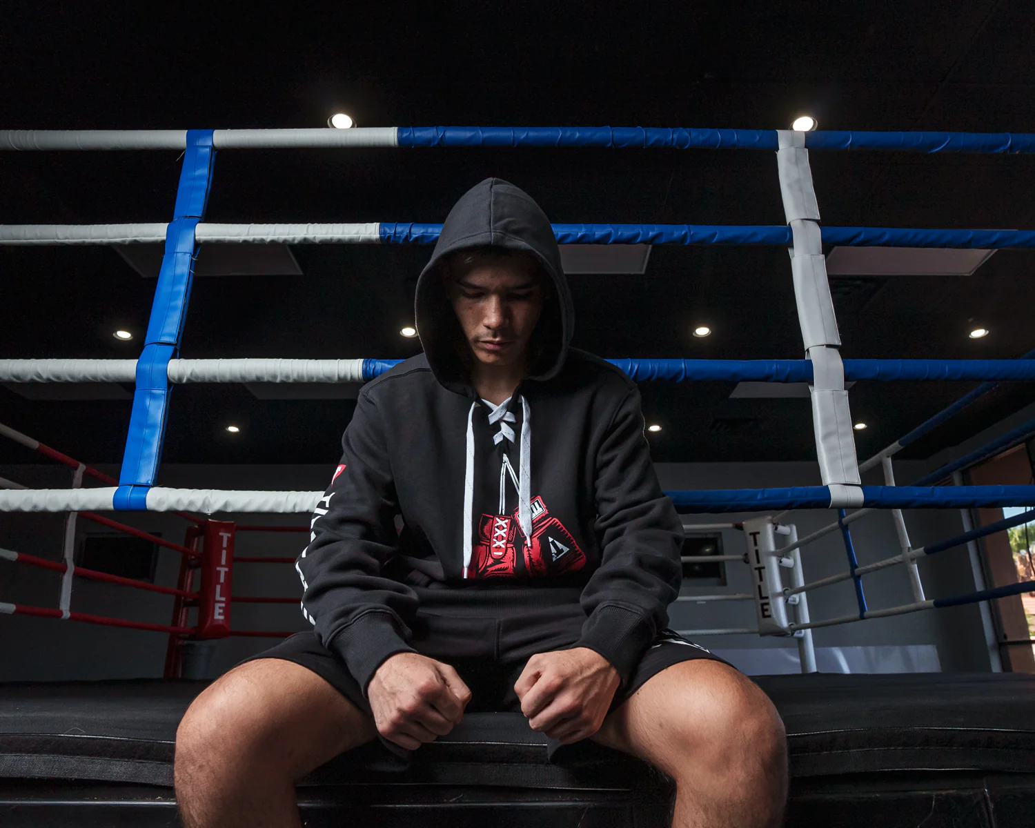 TITLE Boxing Original Hanging Gloves Lace Up Hoodie