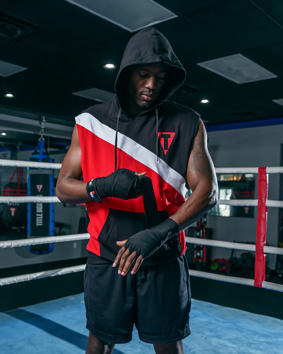 TITLE Boxing Split Combat Sleeveless Hoodie